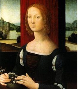 Caterina Sforza, conosciuta per la sua bellezza ed intelligenza, fu una donna attenta alle cure del viso e del corpo, e alla creazione di preparati medicinali e cosmetici. Nasce a Milano nel 1463, da Galeazzo Maria Sforza, duca di Milano, e dalla dama di corte, sua amante, Lucrezia Landriani. Fu cresciuta dalla nonna Bianca Maria Visconti nella raffinatissima corte sforzesca, circondata da artisti e letterati. Giovanissima, sposa Girolamo Riario che Machiavelli apostrofa come “un essere di bassissima e vile condizione” … nipote di Papa Sisto IV, signore di Imola. Caterina nonostante la grazia e l’eleganza dei modi si trova presto costretta a combattere anche militarmente per difendere il suo potere e quello dei suoi figli. Girolamo e Caterina riescono a conquistare anche la Signoria di Forlì, territorio di gente battagliera e da sempre ribelle alla chiesa. In seguito all’assassinio del marito, Caterina trovò rifugio alla Rocca di Ravaldino, dove la leggenda narra che la famiglia dei nobili Orsi minacciarono di ucciderle i figli se non si fosse arresa. La sua risposta fu «Fatelo, se volete: impiccateli pure davanti a me – e, sollevandosi le gonne e mostrando con la mano il pube